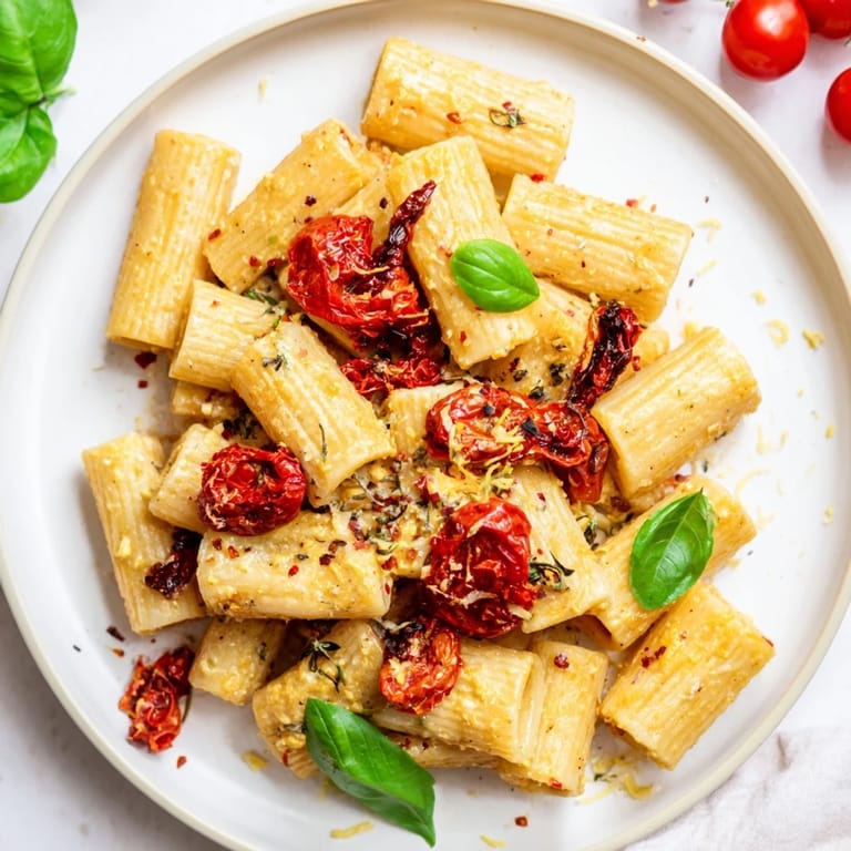 The depth in this dish doesn't come from a long list of ingredients but from the interplay between them. Fresh cherry tomatoes bring juicy sweetness, sun-dried tomatoes add a concentrated tang, and the feta provides a salty, creamy anchor. Roasted garlic mellows and develops a subtle caramel note, while olive oil carries everything together. It's Mediterranean cooking at its most honest—no cream, no fancy technique, just ingredients that respect each other.