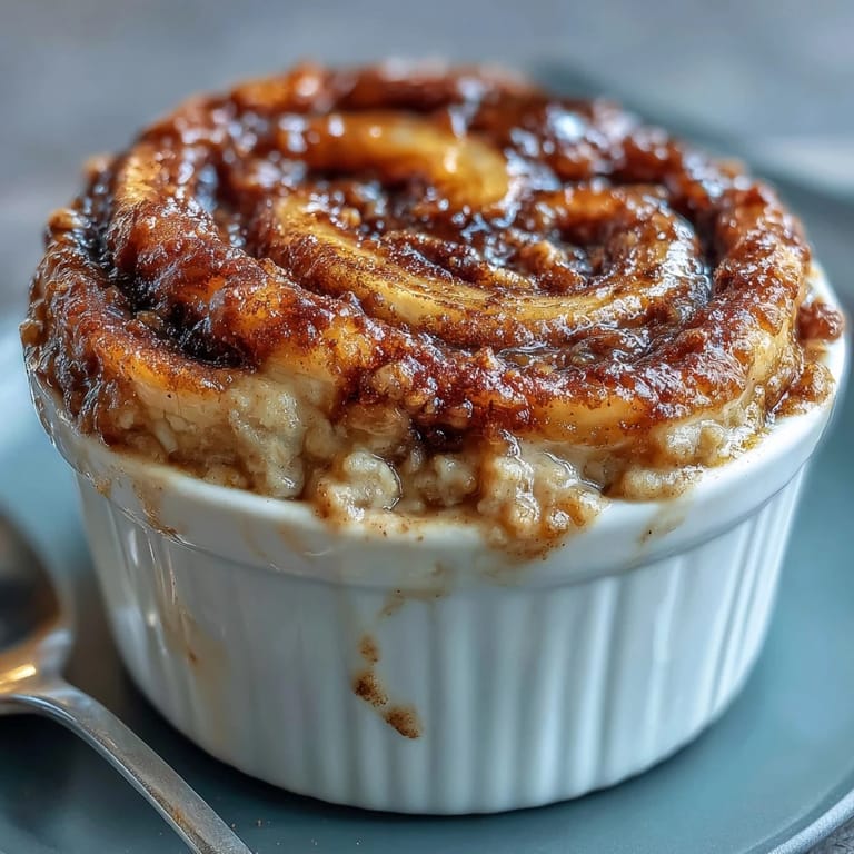 Save There's something magical about baking oats in a ramekin that transforms your kitchen into something warmer than it was five minutes before. One rushed Tuesday morning, I was staring at overripe bananas and a protein powder container, wondering if breakfast could be both quick and actually satisfying. What emerged from the oven was this golden, tender cake-like thing with cinnamon ribbons running through it, and I realized I'd stumbled onto something better than the usual bowl situation. It felt like banana bread and a protein pancake had a cozy breakfast baby, and honestly, I've been making it ever since.
