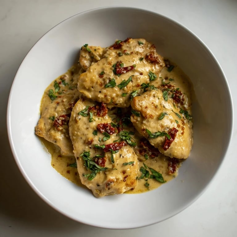 Save There's something about the smell of sun-dried tomatoes hitting hot oil that stops me mid-task every time. It happened one Tuesday when I was testing this creamy skillet dish for the third time—my daughter wandered into the kitchen asking what smelled like a fancy restaurant, and suddenly this wasn't just dinner anymore. The sauce comes together so fast that you'll swear you're cheating somehow, but those golden-seared chicken breasts swimming in that tangy, velvety cream are entirely honest and completely worth the 35 minutes of your evening.