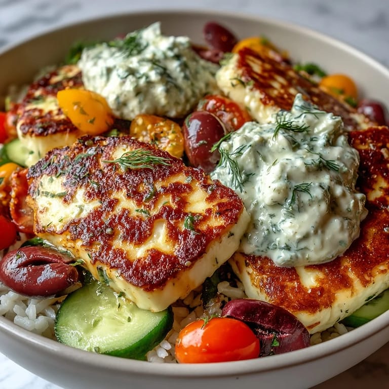 Save Last Tuesday I stood in my kitchen craving something bright and satisfying after a gray week of takeout containers. The halloumi I'd picked up on impulse at the market caught my eye, and suddenly I was building this bowl from memory. Now it has become my go-to when I want dinner to feel like a mini vacation without leaving home.