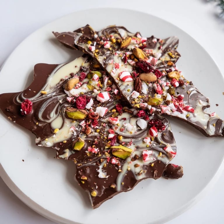 Save A festive and eye-catching chocolate bark, loaded with colorful toppings and broken into elegant shardsβperfect for gifting or as a centerpiece for your holiday dessert table.
