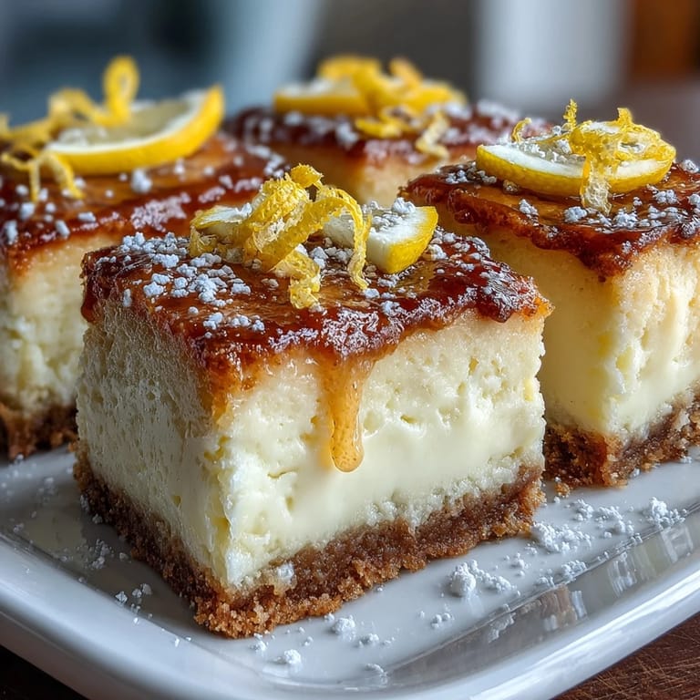 Save There's something about a perfectly balanced lemon dessert that stops conversations mid-sentence. My neighbor handed me a bottle of Limoncello one summer evening, insisting I had to taste what her sister had made in Sicily, and that's when I understood why this Italian aperitif deserves more than just a shot glass. I started experimenting in my kitchen, layering it into creamy, tangy cheesecake bars that somehow taste both sophisticated and completely approachable. These bars hit that rare sweet spot where elegance doesn't require fussing, and the bright citrus keeps people reaching for just one more piece.