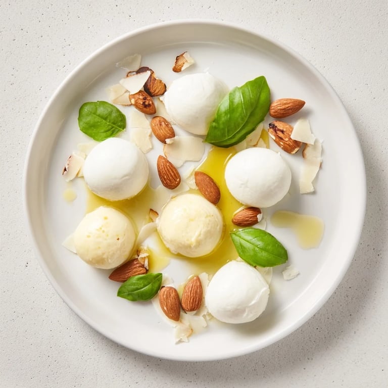 The beauty of this dish is that you're not locked into these exact cheeses—what matters is that you pick three that look different from each other and taste like they belong together. The mozzarella is mild and milky, the goat cheese is tangy, and the Babybel brings a buttery sweetness, so together they tell a complete story on the palate. If you can't find oval-shaped versions, any cheese you can cut or shape into roughly similar ovals will work; it's the intentionality that counts, not perfection. Experiment with smoked almonds or Marcona almonds if you want to shift the flavor profile, or swap in bocconcini and ovolini from your cheese counter.