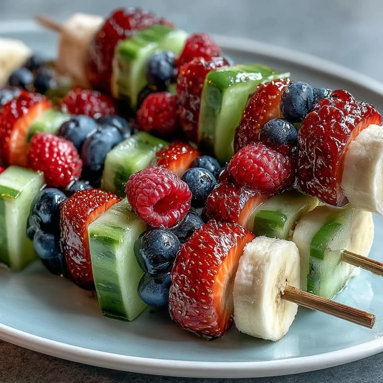 These fruit skewers are wonderfully adaptable to different tastes and dietary needs. For a vegan version, simply use agave syrup instead of honey. Substitute marshmallows for bananas if you want extra sweetness, though note this makes them non-vegan. Add cubes of pound cake between the fruit for a more indulgent dessert variation, perfect for those who want something a bit more substantial. You can also experiment with other red, white, and blue fruits like raspberries or white grapes to create your own unique patriotic combinations.