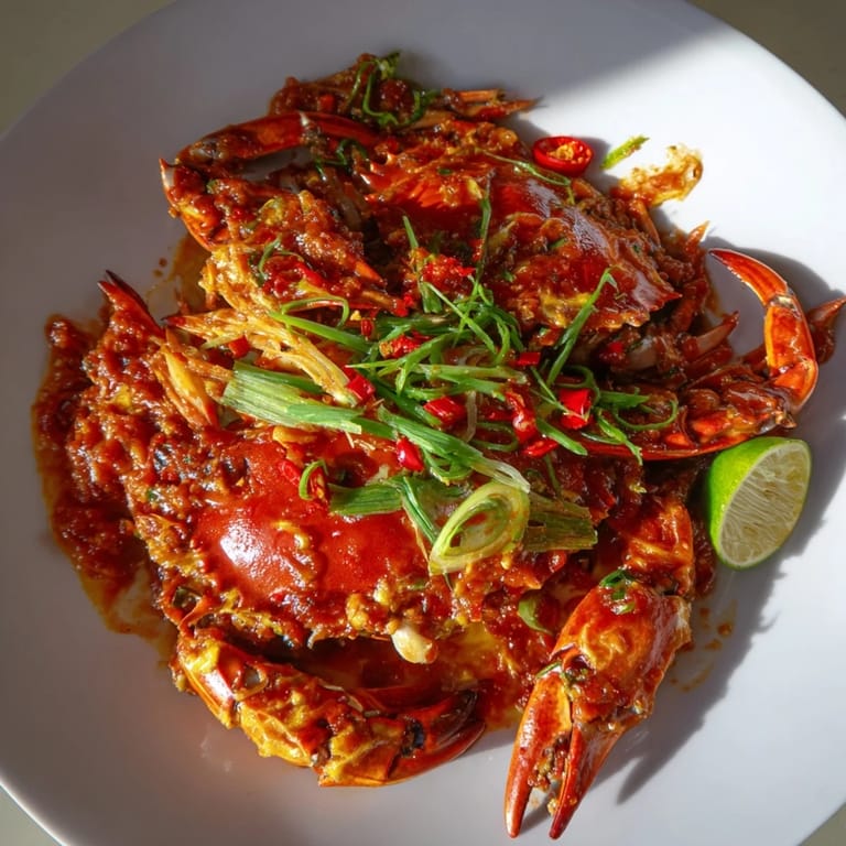 Save The first time I properly tasted chili crab was at a hawker stall in Singapore, watching the cook's wok dance with flames while she tossed crabs that clicked and clattered against the sides. The aroma alone—garlic, chilies, and something tangy and sweet—made me forget to breathe. Years later, I recreated it in my own kitchen, and the moment that sauce hit the hot wok, I was transported right back to that humid evening, sitting on a plastic stool, napkins piling up around me.
