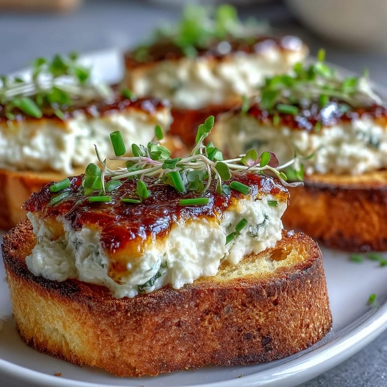 Each component plays a specific role in the final experience, and understanding that changed how I approach this recipe. The toasted bread provides structure and a slight nuttiness that grounds the creaminess above it. The two cheeses create complexity—the goat cheese brings tang and personality while the cream cheese adds smoothness and prevents the spread from being too crumbly. This layering approach is what separates a thrown-together appetizer from something that feels intentional.