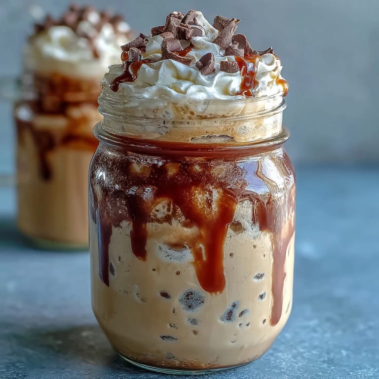 - Before serving, top each jar with whipped cream, chocolate chips, and a drizzle of caramel sauce if desired. Serve chilled.