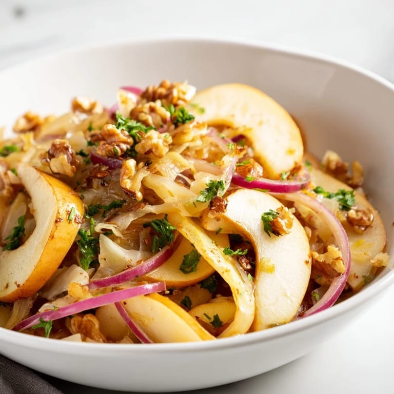 Save My German grandmother would hum old folk songs while chopping vegetables, her knife keeping rhythm with melodies I can still hear. One autumn afternoon she showed me how warm sauerkraut could taste when kissed by sweet apples and caramelized onions. That cozy kitchen smell, equal parts tart and sweet, became my definition of comfort food. I've been making this skillet salad ever since, finding something deeply satisfying about how the tangy fermented cabbage softens into something almost buttery.